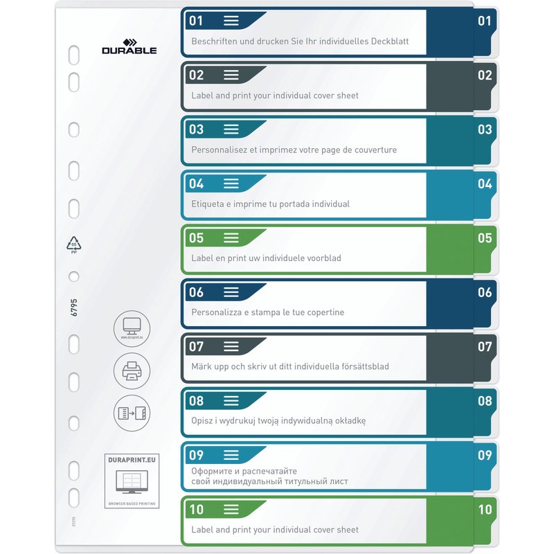 DURABLE Register A4 + 10tlg. 1-10 farbige Taben+trans. Form.