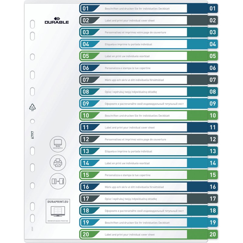 DURABLE Register A4 + 20tlg. 1-20 farbige Taben+trans. Form.