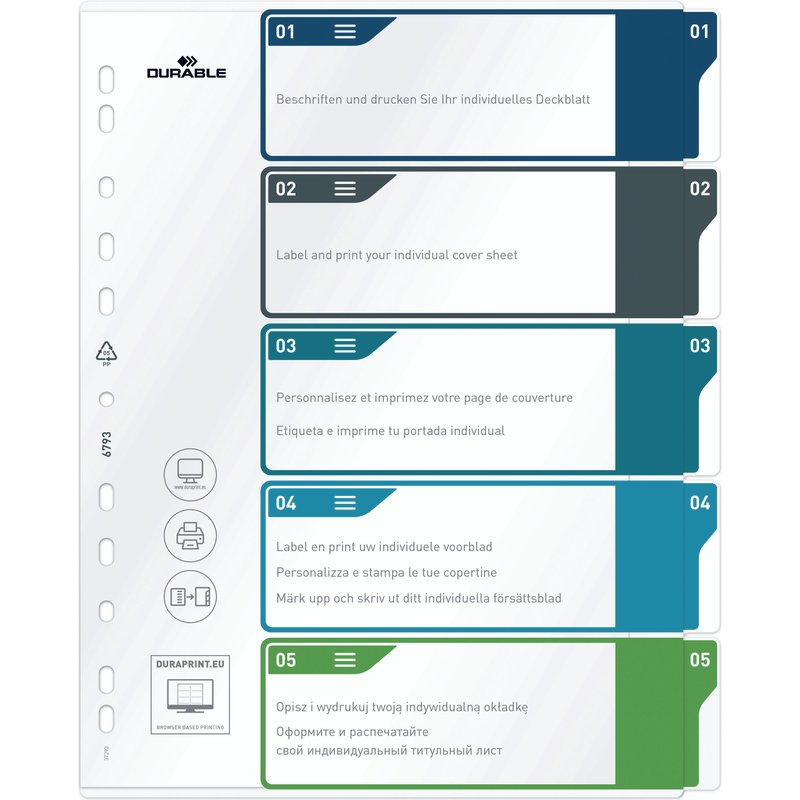 DURABLE Register A4 + 5tlg. 1-5 farbige Taben+trans. Formbl.