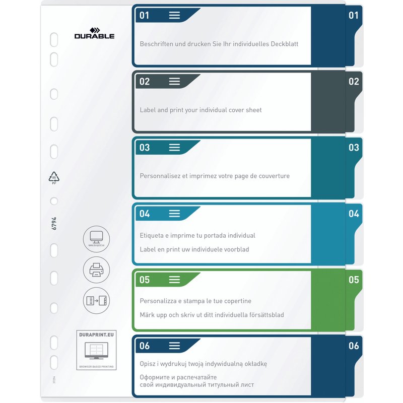 DURABLE Register A4 + 6tlg. 1-6 farbige Taben+trans. Formbl.