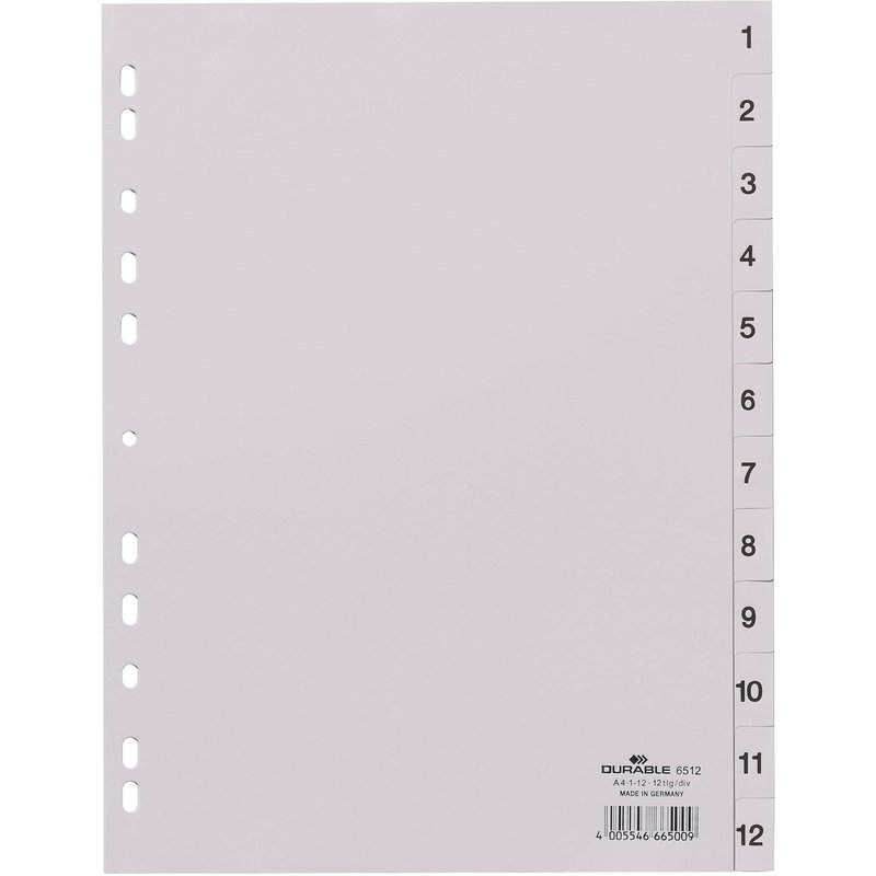 - DURABLE Zahlenregister A4 1-12 PP volldeck. grau