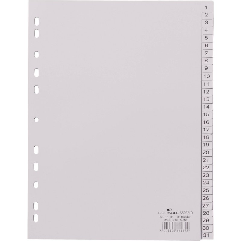 - DURABLE Zahlenregister A4 1-31 PP volldeck. grau