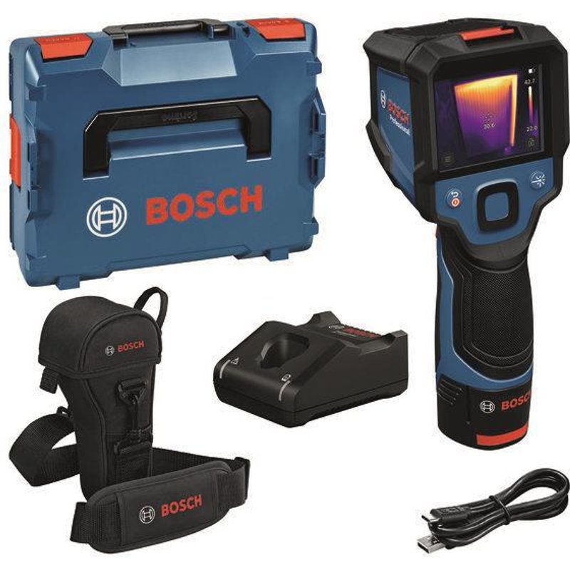 Wärmbebildkamera GTC 12V-450-13 Professional Kompakte Wärmebildkamera zur schnellen und einfachen Visualisierung von Temperaturunterschieden. Visualisiere Temperaturunterschiede in hoher Bildqualität mit nur einem Klick Schnelles Hochfahren, integrierter Laser, Arbeitslicht und visuelle Kamera gewährleisten eine einfache Bedienung Robustes, kompaktes Design mit Schutzart IP54 und Stoßfestigkeit bei Stürzen aus bis zu 2 m Höhe Technische Daten: Messbereich-20°C ... +400°C Auflösung IR 56 x 192 px Messgenauigkeit IR (Mittelpunkt) 2°C Displaygröße3,5" Thermische Empfindlichkeit (NETD) 50 mK Bildspeicher (Anzahl Bilder)500 Gewichtca.** 0,53 kg Lieferumfang: Werkzeugtasche, USB-C®-Kabel, L-BOXX 136, Schnellladegerät GAL 12V-40, Akku GBA 12V 2.0Ah Sensorauflösung (horizontal) 256 px Sensorauflösung (vertikal) 192 px Wärmebild ja Videoaufnahme nein Bildfeldwinkel (FOV) horizontal 56 ° Bildfeldwinkel (FOV) vertikal 42 ° Interner Speicher ja Umgebung - Install.Baumaterial Werkzeug Messgeräte Werkzeug - Bosch Wärmebildkamera GTC 12V-450-13 in L-BOXX 0601083900