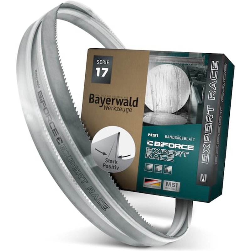 " Das richtige Metall Bandsägeblatt für sehr harte / zähe Stahlsorten: Mit dem Bayerwald BiFORCE EXPERT RACE stellen auch diese problematischen Werkstoffe kein Problem mehr dar. Es lassen sich beispielsweise Kupfer oder Titan sägen, ohne dass das Sägeband übermäßig früh verschleißt.