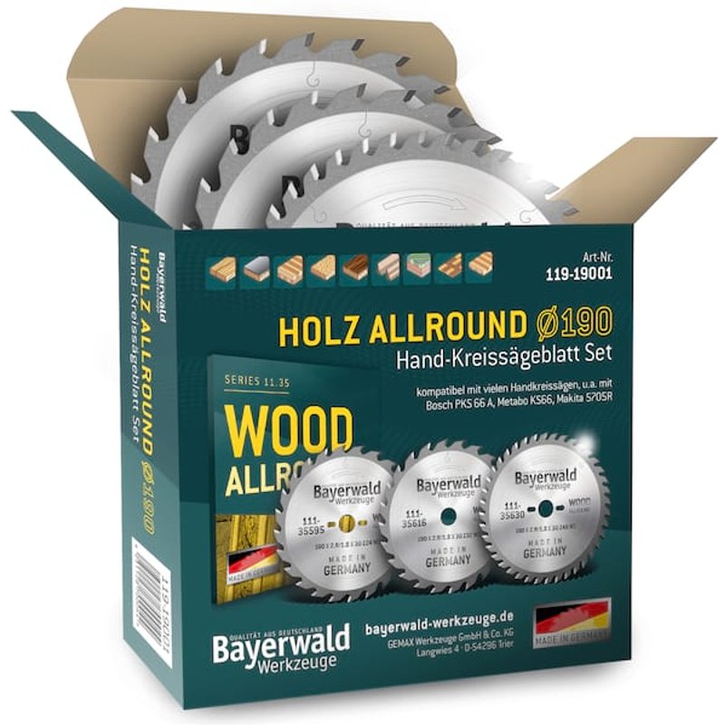 Bayerwald HOLZ ALLROUND Ø190 Hand-Kreissägeblatt Set