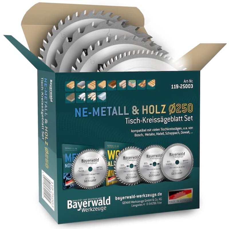 Bayerwald NE-METALL & HOLZ Ø250 Tisch-Kreissägeblatt Set