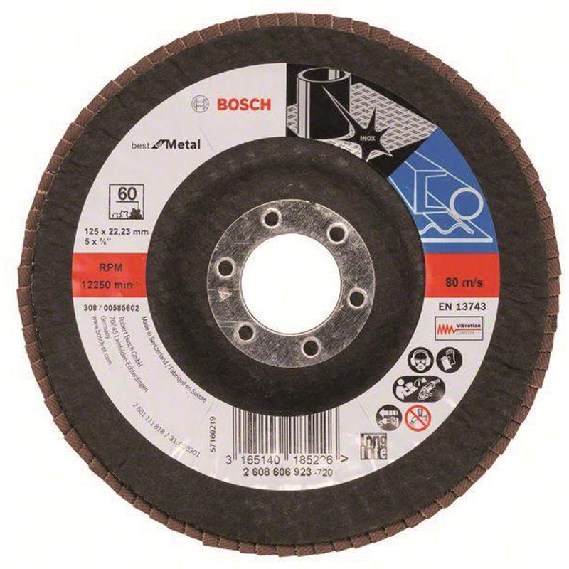 Bosch Fächerschleifscheibe 2608606923 X571 Best Metal gew. 125mm K60 Glasgew.