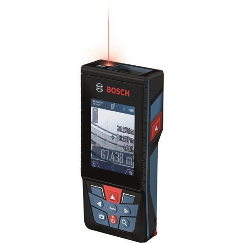 Laser-Entfernungsmesser GLM 150-27 C Professional Digitaler Sucher mit Zoomfunktion für Präzision über große Entfernungen, im Freien und in komplexen Umgebungen Kontrastreiches IPS-Farbdisplay bietet optimale Lesbarkeit Schnelle und einfache Dokumentation. Übertragung von Messungen über Bluetooth zur neuen MeasureOn App. Speichern von Bildern im internen Speicher und Übertragung von Bildern über USB zum PC Integrierte Li-lon-Batterie für hohe Flexibilität und Beitrag zur Nachhaltigkeit Technische Daten: Messgenauigkeit 1,5 mm Messbereich Neigungsmessung360° Genauigkeit Neigungsmessung 0,2° Laserdiode650 mm, 1 mW Laserklasse2 Staub- und WasserschutzIP54 StromversorgungIntegrierte Li-lon 3,6 V (3120 mAh) Laserklasse Klasse 2 Wellenlänge 650 nm Messwertspeicher ja Schnittstelle ja Arbeitsbereich 0,08 - 150,00 m Batterieart Lithium-Ionen Schutzart (IP) IP54 Gewicht 0,21 kg - Install.Baumaterial Werkzeug Messgeräte Werkzeug - Bosch Laser-Entfernungsmesser GLM 150-27 C 0601072Z00