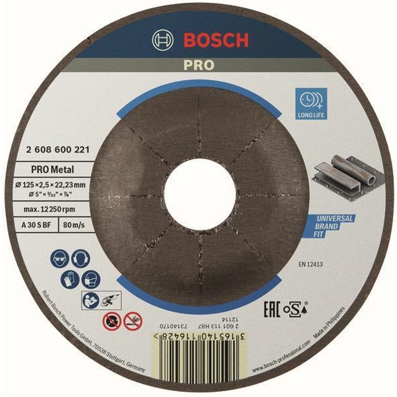 Scheibendurchmesser 125 mm Bohrungsdurchmesser 22,23 mm Stärke 2,5 mm X-Lock Aufnahme nein Anwendung trennen Form gekröpft Topfscheibe nein Geeignet für Metall ja Geeignet für Aluminium ja Geeignet für Beton nein Geeignet für Kunststoff nein - Install.Baumaterial Werkzeug Messgeräte Werkzeug - Bosch Trenn-Scheibe 125MM Metall 2 608 600 221