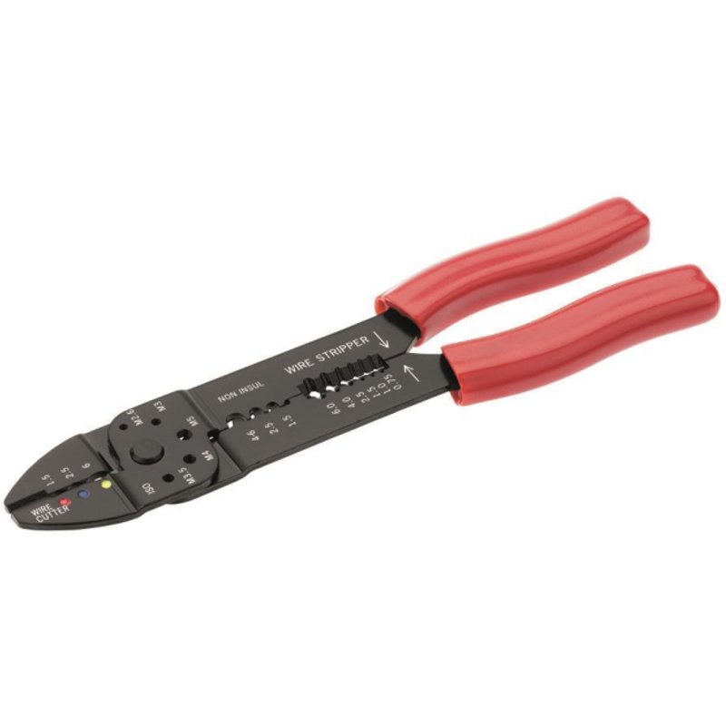 Presszange ECONOMY für isolierte und nicht isolierte Kabelschuhe, mit Draht- und Schraubenabschneider bis M 5, sowie Abisoliervorrichtung 0,5-6 mm 2 , Pressung von Litze und Kabelisolation erfolgt in 2 Arbeitsgängen Geeignet für Kabelschuhe und Verbinder Pressform Ovalpressung Querschnitt 0.5 - 6 qmm Min. AWG-Größe sonstige Max. AWG-Größe 10 Länge 220 mm Mit Sperrvorrichtung (bei mechanischen Werkzeugen) nein Ausführung/Betätigung mechanisch Einsätze auswechselbar nein Mit automatischem Rücklauf nein - Install.Baumaterial Werkzeug Messgeräte Werkzeug - Cimco Presszange IS 220mm 101892 0,5-6qmm Ovalpressung