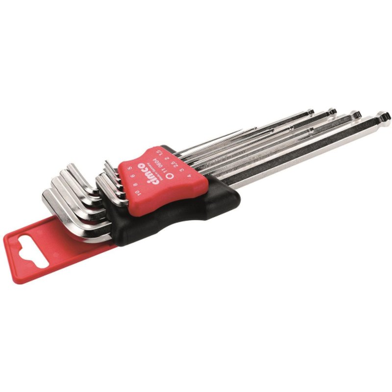 Sechskant-Stiftschlüssel-Satz 9-teilig mit den Schlüsselgrößen SW 1,5 - SW 2 - SW 2,5 - SW 3 - SW 4 - SW 5 - SW 6 - SW 8 - SW 10 mm, mit extra langer Klinge mit Kugelkopf, aus durchgehärtetem S2-Spezialstahl, polierte, hart verchromte Oberfläche, abgerundete Kanten, in praktischem Kunststoffhalter für die Werkzeugtasche sowie die Wandbefestigung Größen 1.5 - 10 mm Anzahl der Schlüssel 9 Mit Kugelkopf ja Ausführung Kunststoffsockel Ausführung des Handgriffes rechtwinklig Farbe sonstige - Install.Baumaterial Werkzeug Messgeräte Werkzeug - Cimco Sechskant-Stiftschlüssel-Satz 9-tlg. 110604