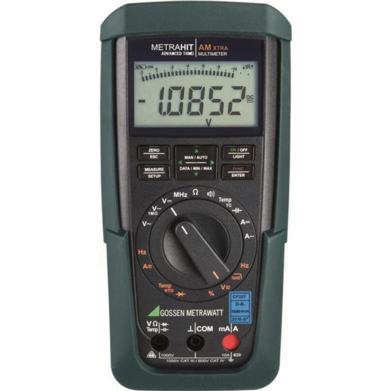 METRAHIT AM XTRA 4 1/2-stelliges High End System TRMS-Digital Multimeter Anzeige: 10 000 Digits, TRMS bis 20 kHz Multimeterfunktionen: VACTRMS, VAC+DC TRMS, VDC, Hz, , Durchgang, Diode, Kapazität, AACTRMS, AAC+DC TRMS Präzisionstemperaturanzeiger für PT 100/1000 Sensoren und K-Thermoelemente Zusätzliche Filterfunktion und niederohmige Spannungsmessung zur Störbegrenzung z.B. bei Messungen an Frequenzumrichtern Akustische/optische Signalisierung bei: Durchgangsprüfung, berührungsgefährlichen Spannungen, Überschreitung von Überlastgrenzen Speicherung von Min-/Max-Werten 4 MB Datenspeicher für Messungen über längere Zeiträume Netzteilanschluss für Batterie unabhängigen Betrieb Infrarot Interface für die Kommunikation zum PC PC-Software MetraView und USB-Adapter optional erhältlich neues Gehäusedesign, extra Batterie u. -Sicherungsfach großes Display mit lichtblauer LED Hintergrundbeleuchtung, 15 mm Ziffernhöhe und analogem Bargraph 3 Buchsen mit patentierter ABS-Buchs - Install.Baumaterial Werkzeug Messgeräte Messgeräte - Gossen TRMS-Multimeter METRAHIT AM XTRA Digitale und analoge Anzeige M240A