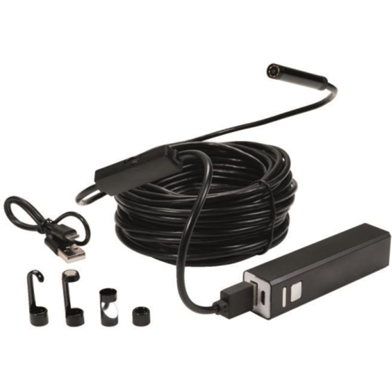 Cable Scout Cam-DIV-BK Cable Scout Kamera Drahtlose Bild- und Videoübertragung per WiFi Kostenlose App für Android und iOS Systemkompatibilität: Android, iOS, Windows, Mac IP Schutzklasse: IP68 (Sonde) Betrachtungswinkel: 70 °. Auflösung: 2,0 Megapixel Sondenlänge: 10 m. Kabeltyp: Semi starr Brennweite: 4-8 cm. Kamerakopfdurchmesser: 8 mm Frequenz: 2,4 GHz. LED-Licht: Dimmbar Cable Scout Cam ist eine professionelle WiFi-HD-Inspektionskamera zur Sichtprüfung von bis zu 10 Meter entfernten Objekten. Es ist möglich, Videobilder in Echtzeit zu übertragen und Video- und Fotoaufnahmen auf engstem Raum zu machen, die ansonsten nur schwer einsehbar wären. Dieses Produkt ist kompatibel mit Android, iOS, Windows und MAC-Betriebssystemen. Art des Zubehörs/Ersatzteils sonstige - Install.Baumaterial Werkzeug Messgeräte Werkzeug - Hellermann Cable Scout Cam-DIV-BK WLAN-HD Inspektionskamera 897-90060