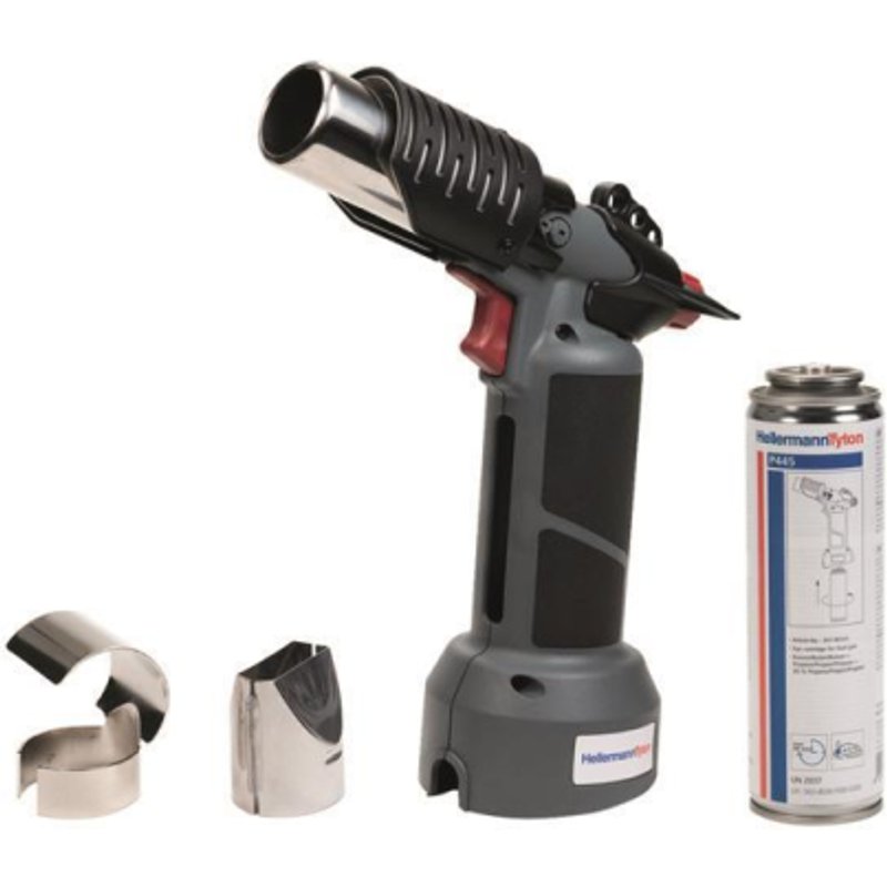 Gasheissluftgebläse CHG900-PA-GY Gas-Heißluftgebläse für den mobilen Einsatz. Kabellos, mit Hitzeschutzspirale incl. einer Gas-Patrone und zwei Mundstücken. Für präzises Arbeiten ohne Stromanschluß in jeder Position, sogar kopfüber. Stabiler Standfuß für Bewegungsfreiheit der Hände. Gewicht des Werkzeugs: 760 g. Piezo-Zündung. Ventilgeregelte Temperatureinstellung. Gaspatrone Typ P445, 110 ml/60 g. Betriebsdauer: ca. 1,5 Std. Neuartiges 3-Komponenten Gasgemisch, für höheren Druck auch bei Außentemperaturen unter 0 °C. Die CHG900 eignet sich für das Schrumpfen von wärmeschrumpfenden Produkten aller Art, außerdem zum Weichlöten, Kunststoffverformen und Entfrosten. Temperatur 190 - 900 °C Mit Temperaturregelung ja Luftstromregulierung stufenlos Maschinengewicht 0,547 kg - Install.Baumaterial Werkzeug Messgeräte Werkzeug - Hellermann CHG900-PA-GY Gasheissluft- gebläse m.P445+2Düsen 391-90010