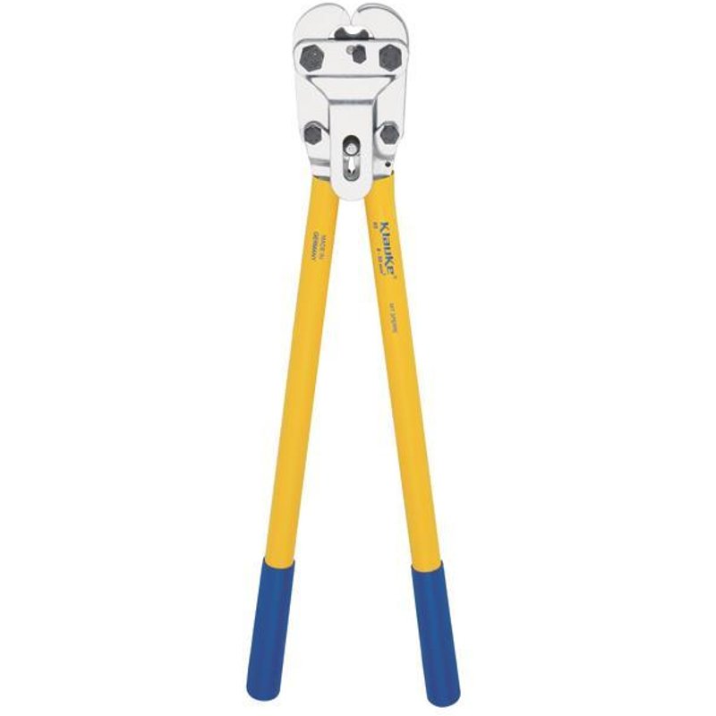 Kerbwerkzeuge ohne Sperrvorrichtung für nicht-isolierte Kabelverbindungen Kerbverpressung Version mit Sperrvorrichtung für gleichmäßig kontrollierte Pressergebnisse Wartungsarmer mechanischer Antrieb Für Rohrkabelschuhe und Verbinder Normalausführung Für Rohrkabelschuhe und Verbinder für feindrähtige Leiter Mit drehbarer Profilscheibe Exakte Querschnittszuordnung an den Profilscheiben Technische Daten: Pressbereich:6-50 mm 2 Länge:600 mm Gewicht:2,4 kg Pressbereich: 6-50 mm 2 Länge: 600 mm Gewicht: 2,4 kg Geeignet für Kabelschuhe und Verbinder Pressform Kerbung Querschnitt 6 - 50 qmm Länge 700 mm Mit Sperrvorrichtung (bei mechanischen Werkzeugen) nein Ausführung/Betätigung mechanisch Einsätze auswechselbar nein Anzahl der mitgelieferten Einsätze 0 Mit automatischem Rücklauf nein - Install.Baumaterial Werkzeug Messgeräte Werkzeug - KLAU Kerbzange K5