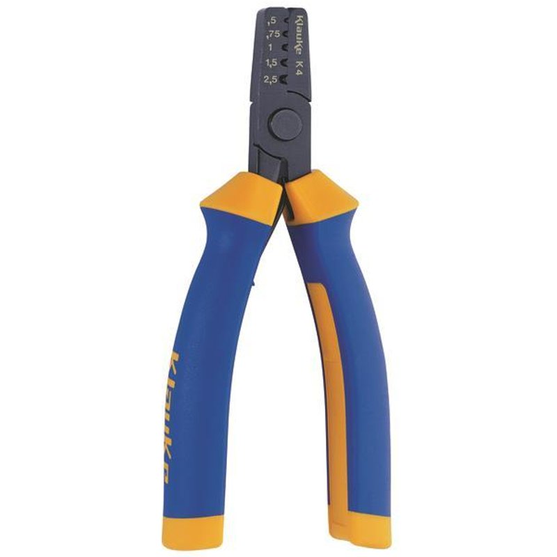 Presswerkzeug K4 für Aderendhülsen Dornpressung, seitliche Hülseneinführung Pressbereich: 0,5-2,5 mm 2 Geeignet für Aderendhülsen Pressform Dornpressung Querschnitt 0.5 - 2.5 qmm Min. AWG-Größe 24 Max. AWG-Größe 14 Länge 150 mm Mit Sperrvorrichtung (bei mechanischen Werkzeugen) nein Ausführung/Betätigung mechanisch Einsätze auswechselbar nein Anzahl der mitgelieferten Einsätze 0 Mit automatischem Rücklauf nein - Install.Baumaterial Werkzeug Messgeräte Werkzeug - KLAU Presszange 0,5-2,5 K4