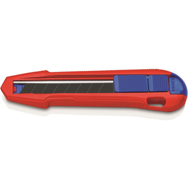KNIPEX CutiX Universalmesser Verlässlicher Begleiter mit individuell einstellbarer Klingenstabilisierung:kein unabsichtliches Biegen oder Brechen der Klinge Innovative, variabel ausfahrbare Stabilisierungsschiene:vielseitiger Einsatz, schneller Arbeiten, präzises Schneiden Ohne Verletzungsrisiko gezielt Druck auf Klingenrückseite ausüben, kein unabsichtliches Biegen oder Brechen der Klinge Robustes, langlebiges Magnesiumgehäuse:leicht wie Kunststoff, stark wie Alu-Druckguss Festsitzende Klinge dank hochwertiger Klingenverriegelung:sicherer Sitz beim Schneiden, Schieben und Schaben Handlich:165 mm lang, ca. 111 g leicht Erstausrüstung mit hochwertigen Abbrechklingen, zwei Ersatzklingen in der Griffschublade, werkzeuglos wechselbar Geeignet für handelsübliche 18 mm breite Klingenformen:glatt, gewellt, mit Haken Liegt angenehm in der Hand durch schlanke Form und viele Griffzonen:festes und rutschsicheres Greifen, komfortables Halten Flache, ergonomische Schieber separat für Kl - Install.Baumaterial Werkzeug Messgeräte Werkzeug - Knipex CutiX Universalmesser 0308753 mit Klingenstabilisierung 165mm