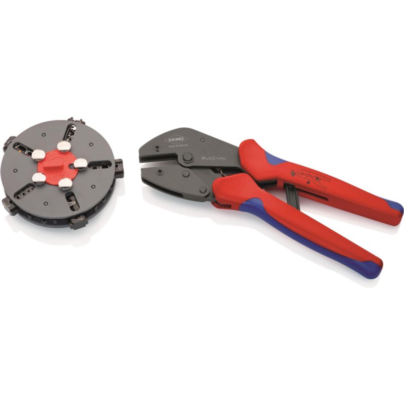MultiCrimp Crimpzange Crimpzange mit Wechselmagazin und 5 Crimpeinsätzen nur ein Werkzeug für die gängigsten Crimpanwendungen schnelles und einfaches Wechseln der Crimpeinsätze ohne Zusatzwerkzeug sichere und geschützte Aufbewahrung der Wechseleinsätze in einem Rundmagazin komfortable, leistungsstarke Crimpzange in Profi-Qualität zuverlässige Crimpergebnisse wie bei fest montierten Crimpeinsätzen gleichbleibend hohe Crimpqualität durch Präzisionseinsätze und Zwangssperre (entriegelbar) Chrom-Vanadin-Elektrostahl in Sondergüte, ölgehärtet Rundmagazin:Kunststoff, glasfaserverstärkt Inhalt: Crimpzange mit Rundmagazin und fünf Wechseleinsätzen für: unisolierte, offene Steckverbinder (4,8 + 6,3 mm Steckerbreite) von 0,5 bis 6,0 mm², isolierte Kabelschuhe, Steckverbinder + Stoßverbinder von 0,5 bis 6,0 mm², isolierte + unisolierte Aderendhülsen von 0,25 bis 6,0 mm², isolierte + unisolierte Aderendhülsen mit 10 / 16 und 25 mm² unisolierte Quetsch-, Rohr- und Pre - Install.Baumaterial Werkzeug Messgeräte Werkzeug - Knipex MultiCrimp-Zange 250mm 973302 mit Wechselmagazin und 5 Crimpeinsätzen
