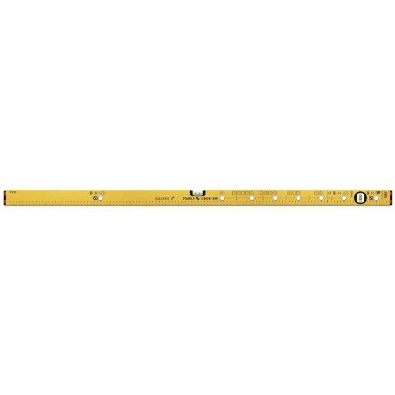 Elektriker-Wasserwaage Type 70 Electric Rechteckprofil aus korrosionsbeständiger Leichtmetall-Legierung. Pulverbeschichtung in gelb. Unzerbrechliche Libellen aus Block-Acrylglas, in den Wasserwaagenkörper fest eingegossen. Messgenauigkeit in Normallage: 0,029° = 0,5 mm/ m. Integrierte Metallhülsen zum Anzeichnen der Bohrlöcher von Mehrfachsteckdosen und Signaldosen sowohl in waagerechter als auch senkrechter Ausrichtung. Patentierte Stopper an den Endkappen. - Install.Baumaterial Werkzeug Messgeräte Werkzeug - Stabila Wasser-Waage 120cm Type 70 Electric 16136